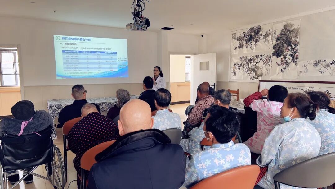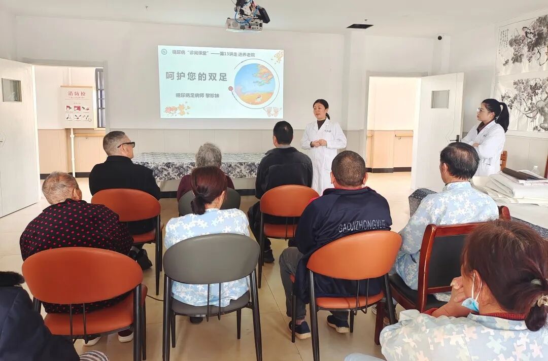 接着,糖尿病足病师黎珍妹向老人们及护理员介绍了糖尿病足的相关知识、诱因以及日常足部护理小技巧。在讲座过程中,与老人们进行了亲切互动。她耐心解答了老人们关于糖尿病的各种疑问,并针对每个人的具体情况给出了建议。老人们纷纷表示,通过这次讲座,他们对糖尿病有了更深入地了解,也知道如何更好地关爱自己的身体健康。