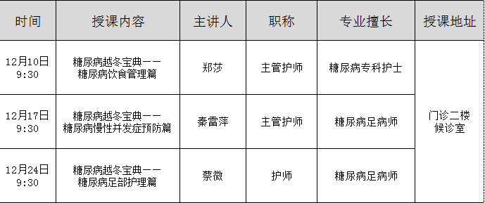 “糖尿病诊间课堂”12月份课程预告